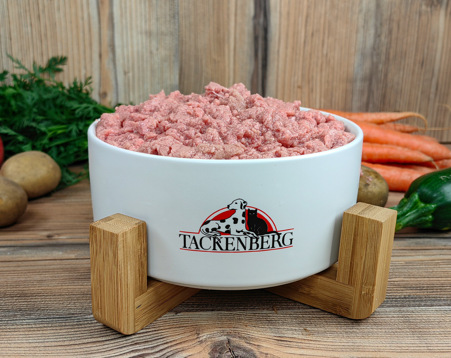 Um eine ausgewogene Mahlzeit zu gewährleisten, empfehlen wir bei Hunden ein Verhältnis von ca. 80% Fleisch und Innereien & 20% pflanzlicher Komponente.