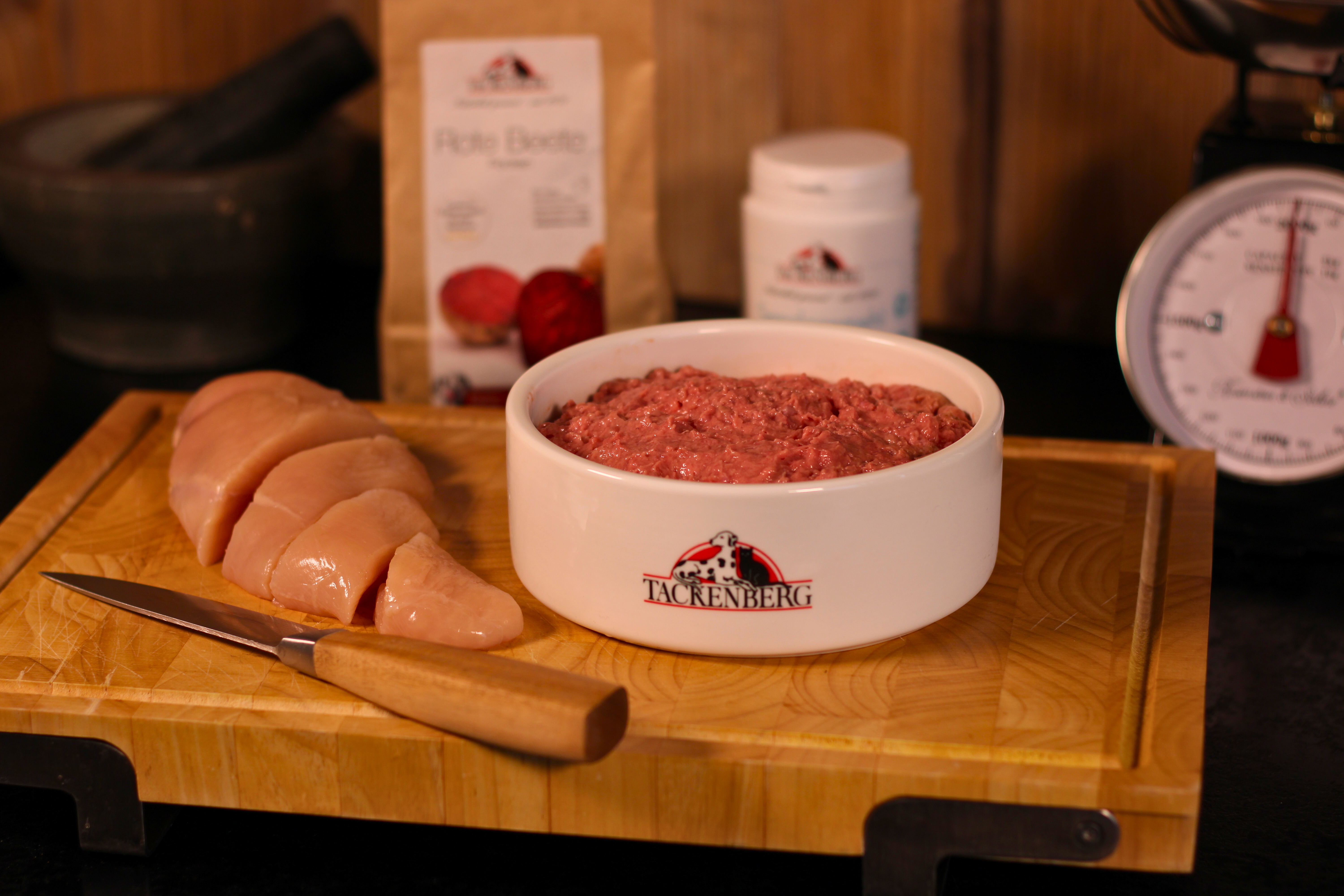 So fantastisch kann BIO schmecken: TACKENBERGS BIO-Hühnerpatée ist eine edle Komposition der besten Teile vom Hühnchen, fein gewolft zu einer wunderbar zarten und leckeren rohen Pastete. Eine Rohfutter-Mahlzeit der Extraklasse - auch für extrem wählerische Hunde und Katzen, BARF-Einsteiger oder Welpen ideal! Selbst ältere Hunde, die nicht mehr gut kauen können, lieben unser Patée. Die BIO-Qualität steht für eine artgerechte Haltung und Ernährung der Hühner, die die tierischen Rohstoffe für unsere BIO-Hühnerpatée liefern. BIO tut eben Mensch, Tier und Umwelt gut!