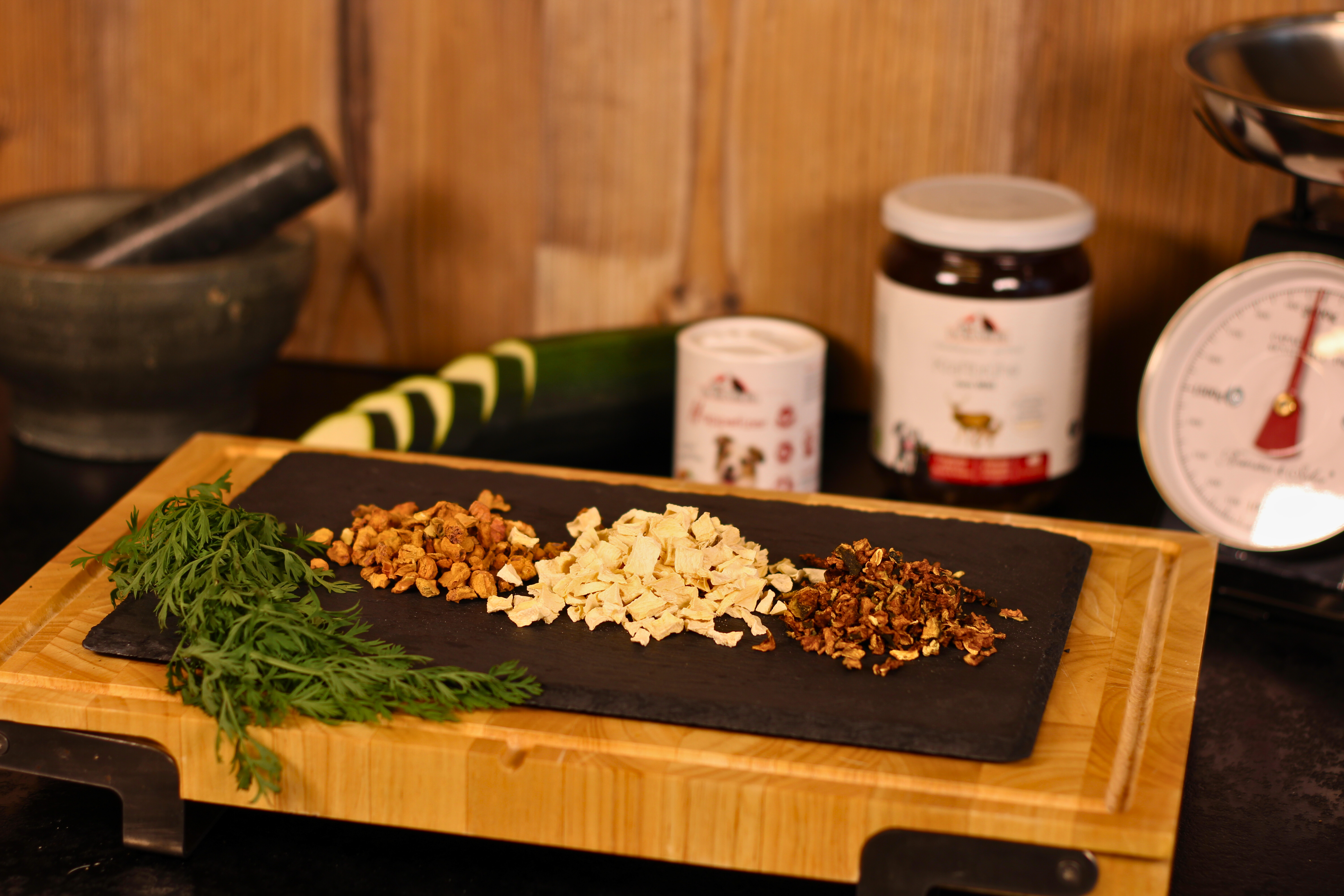 - getrocknete BIO-Pastinake Flocken, ideal als Ergänzung zur Fleischfütterung