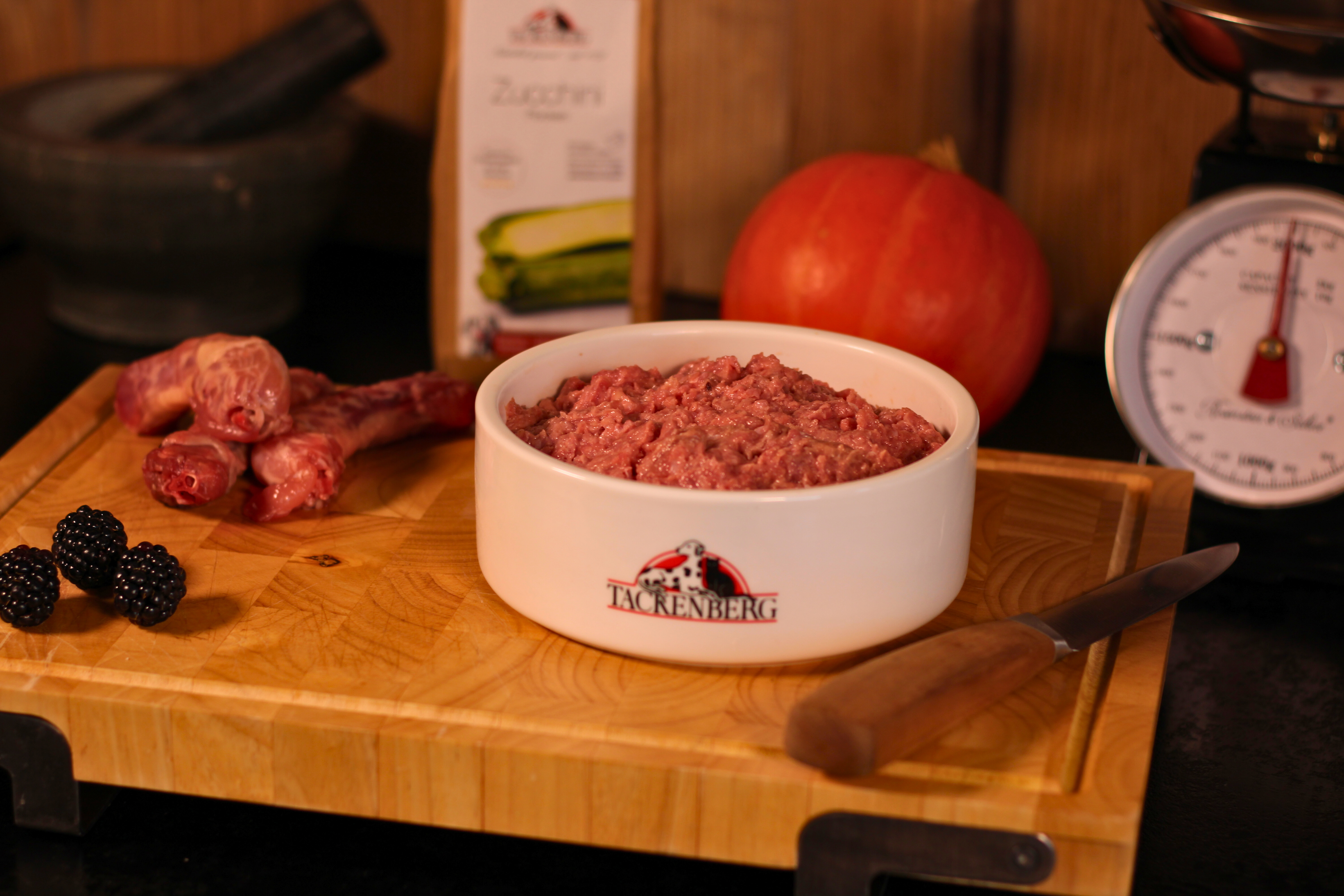 Um eine ausgewogene Mahlzeit zu gewährleisten, empfehlen wir bei Hunden ein Verhältnis von ca. 80% Fleisch und Innereien &, 20% pflanzlicher Komponente.