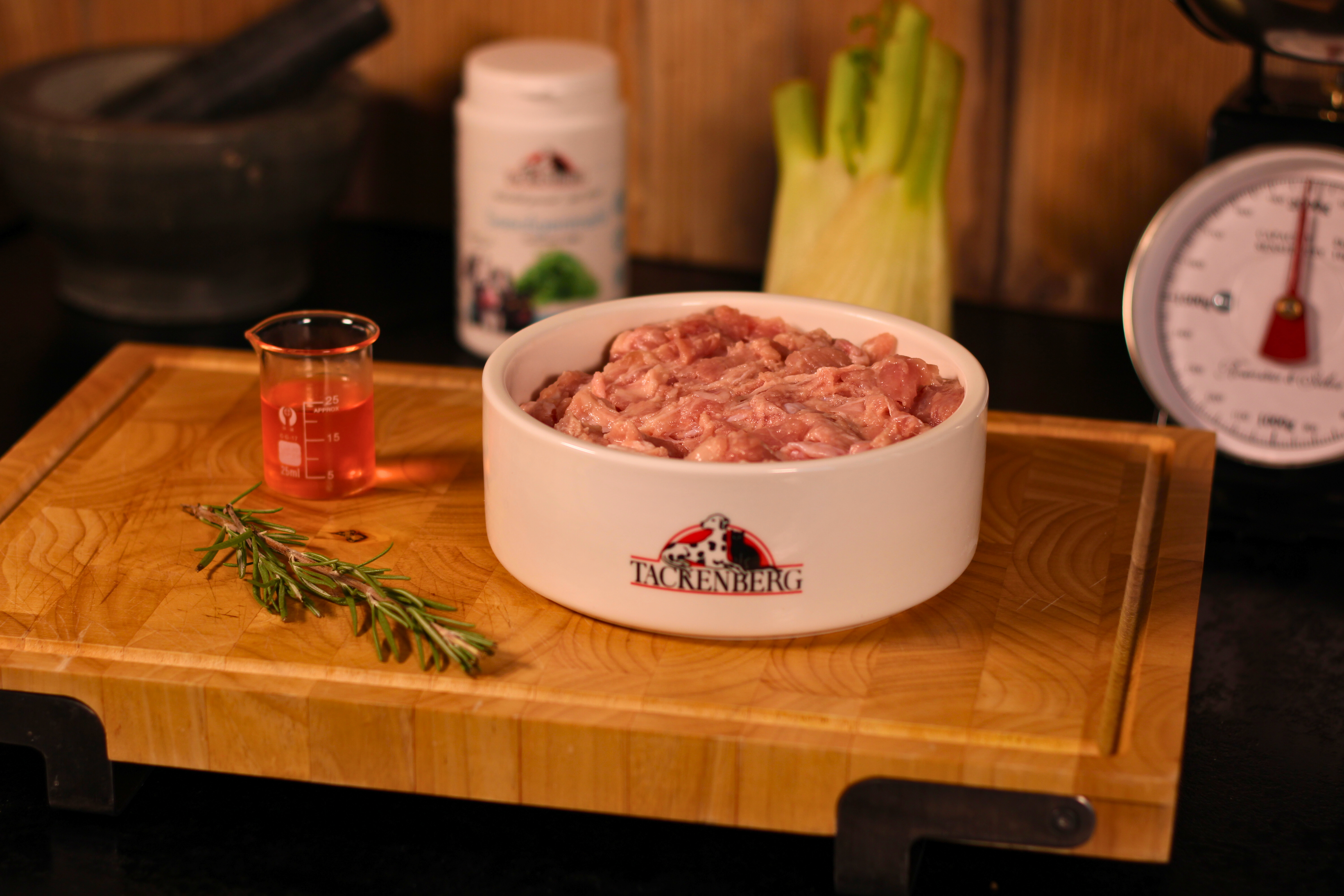 Unsere sorgfältig zusammengestellten Menüs bieten Deinem Vierbeiner eine natürliche und ausgewogene Ernährung. Sie sind ideal für Hunde aller Altersgruppen und Größen, um deren Gesundheit und Vitalität zu unterstützen. Vertraue auf die Qualität und Erfahrung von TACKENBERG und mache BARF zu einem festen Bestandteil des Speiseplans Deines Hundes. Unsere BARF-Komplettmenüs sind einfach in der Handhabung und sorgen für eine unkomplizierte Fütterung. Genieße die Gewissheit, dass Dein Hund nur das Beste bekommt, mit frischen und hochwertigen Zutaten. Entdecke die Vorteile von BARF und biete Deinem Hund eine artgerechte Ernährung, die ihn rundum glücklich macht.