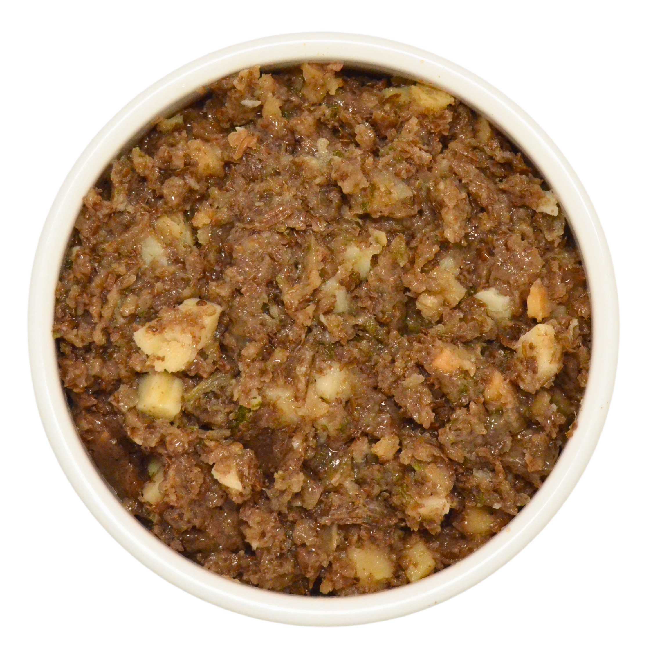 Um eine ausgewogene Mahlzeit zu gewährleisten, empfehlen wir bei Hunden ein Verhältnis von ca. 80 % Fleisch und Innereien & 20 % pflanzlicher Komponente.