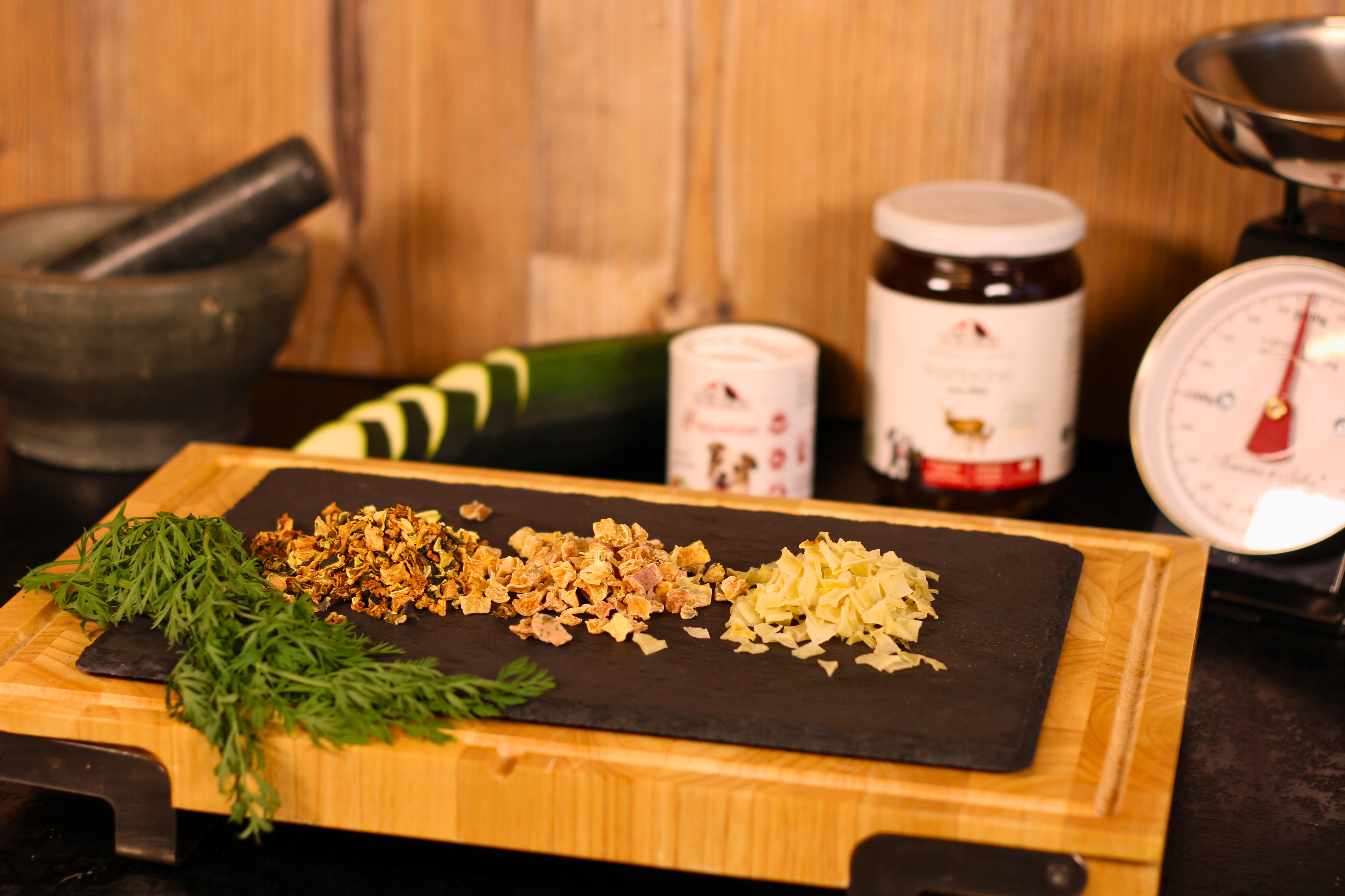 Gute Qualität. Die Flocken werden mit den anderen Gemüseflocken gemischt. Rohfleisch und Öl dazu und es ergibt eine ausgewogene Mahlzeit.
