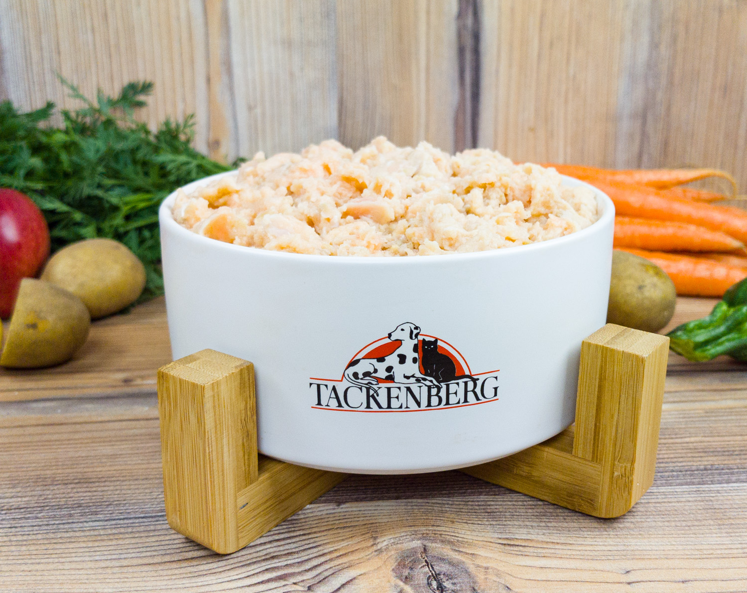 Um eine ausgewogene Mahlzeit zu gewährleisten, empfehlen wir bei Hunden ein Verhältnis von ca. 80% Fleisch und Innereien &, 20% pflanzlicher Komponente.