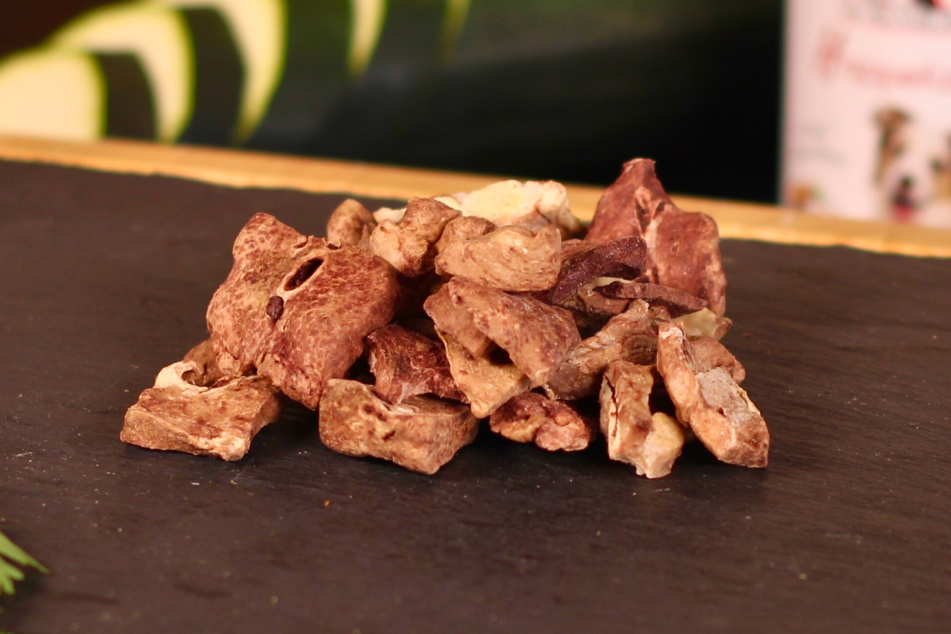 Durch ihre handliche Größe und die praktischen wiederverschließbaren Becher eignen sich unsere gefriergetrockneten Snacks ideal für das Hundetraining oder auch für lange Spaziergänge mit deinem Liebling. Sie lassen sich einfach verstauen und transportieren.