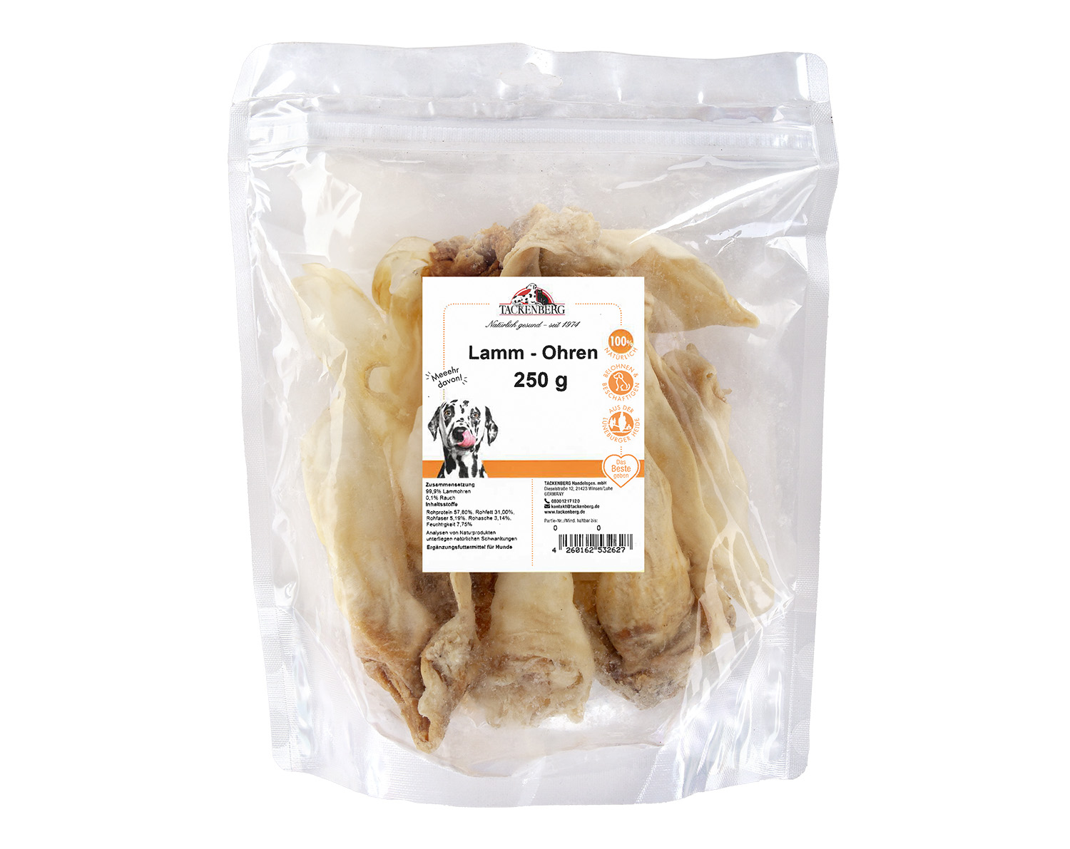 Durch das intensive Kauen auf dem knackigen Lammohr werden die Zähne deines Hundes gereinigt und die Durchblutung seines Zahnfleisches gefördert. Die Kiefermuskulatur wird zusätzlich gestärkt - und dein Vierbeiner wird auch mental gefordert, denn das lange Kauen ist eine artgerechte Beschäftigung. Probiere TACKENBERGS getrocknete Ziegenohren aus - die kleine 250 Gramm-Packung ist ideal zum Testen!