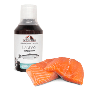 Lachsöl ist reich an verschiedenen Fettsäuren, allen voran den gesunden Omega-3-Fettsäuren, wie EPA und DHA. Diese sind wichtig, um den gesamten Organismus am Laufen zu halten. Darüber hinaus wirken sie entzündungshemmend und können so der Entstehung von diversen Krankheiten vorbeugen. Öl als sehr fetthaltiger Futterzusatz, trägt ebenfalls dazu bei, dass fettlösliche Vitamine besser aufgenommen werden können.