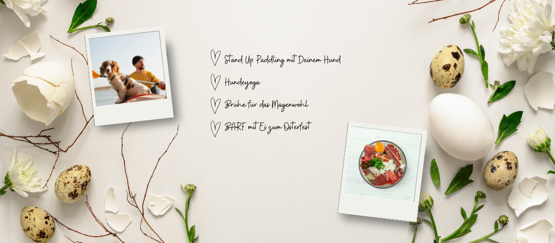 Darf mein Hund Eier zum Osterfest essen? Ja, natürlich darf er das. Du kannst das ganze Ei verfüttern, auch die Schale eignet sich für Hunde. Möchtest Du die Nährstoffe des Eis gezielt nutzen? Dann ist es am sinnvollsten das Eigelb roh zu verfüttern und das Eiklar vor der Fütterung zu erhitzen. Im Eigelb befindet sich Biotin, das gut für Haut und Fell ist. Jetzt das Gemeine: im Eiklar befindet sich der Gegenspieler, Avidin. Füttert man das Eigelb also zusammen mit dem rohen Eiklar, dann hat man ein Nullsummenspiel, denn das Avidin bindet das Biotin und macht es für den Körper unbrauchbar.