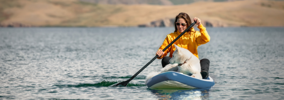 Ein gemeinsames Abenteuer für Dich und Deinen Vierbeiner. Für verbesserte Koordination und die Schulung von Gleichgewicht für Mensch und Hund. Bevor Ihr Euch auf das Wasser wagt, solltet Ihr zunächst Trockentraining absolvieren. Sitz, Platz und Bleib auf dem Board sollten bereits an Land funktionieren. Der nächste Schritt ist der Kontakt mit dem Paddel. Hierzu stellt Ihr Euch über den Vierbeiner und bewegt das Ruder über ihn hinweg. Für einen erfolgreichen Start auf dem Wasser sollte der Hund einige Male auf das Board und wieder herunter nachdem er dort einige Zeit verweilt. Wichtig ist, die Wassertemperatur zu beachten und auch die Schwimmkenntnisse Deines Tieres bedenken.