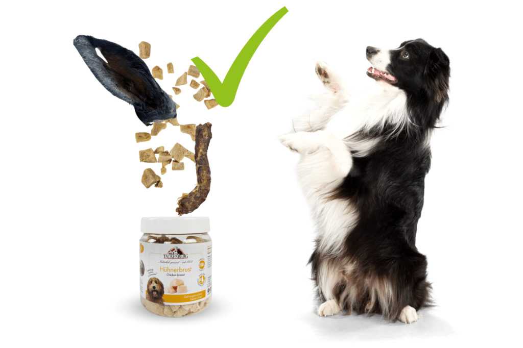 Statt riskanter Speisereste vom Festtagstisch kannst Du Deinem Hund auch anders ein festliches Menü bieten, das speziell auf seine Bedürfnisse abgestimmt ist. Ein hochwertigesNassfuttermit winterlichen Zutaten wieGans,EnteoderWildeignet sich hier hervorragend als Ersatz. So kann Dein Hund sicher mitfeiern, ohne gesundheitliche Risiken einzugehen. Auch ein leckererKausnackist zu den Feiertagen eine deutlich bessere Option.