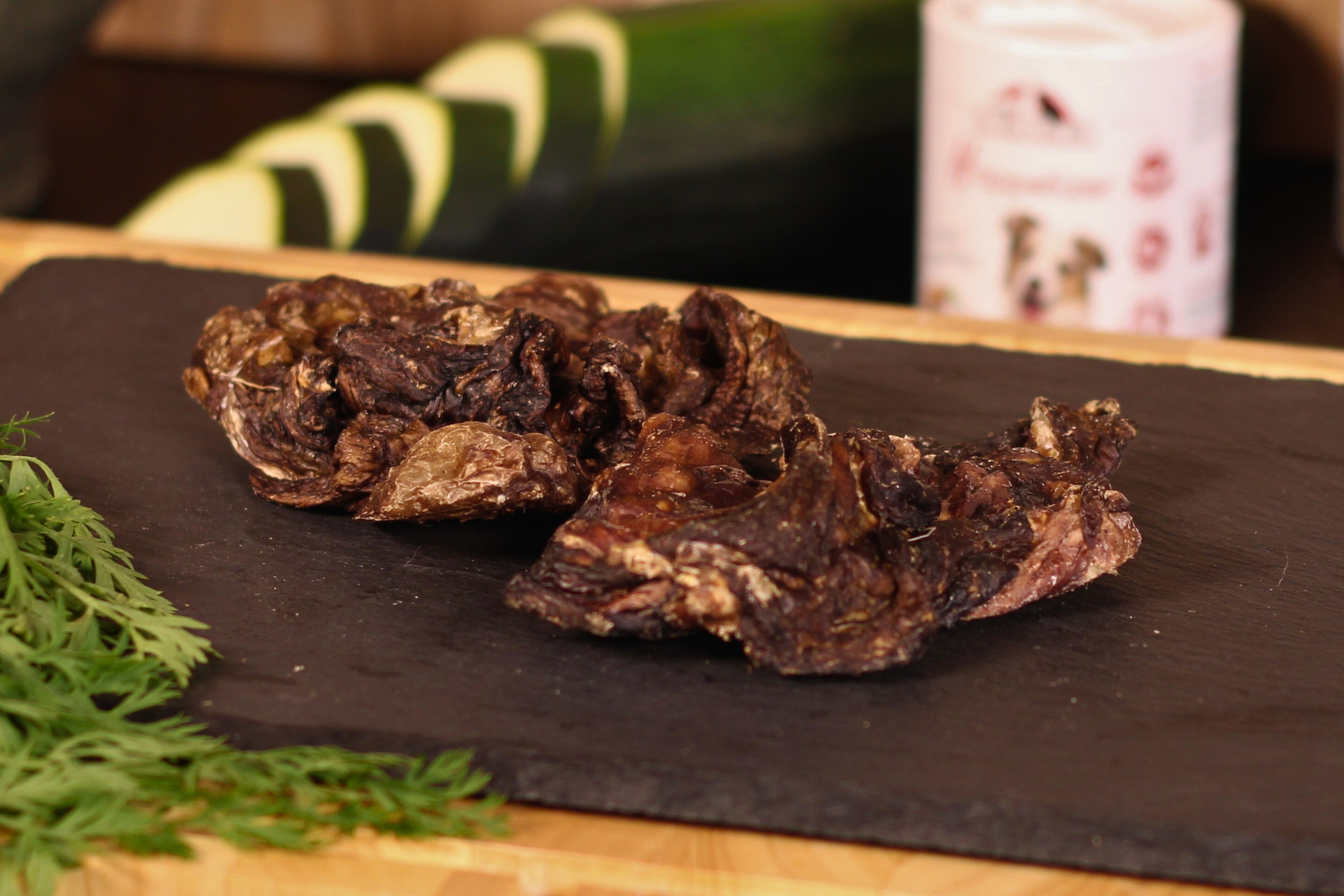 Ein Hundesnack aus getrocknetem Rehfleisch ist die artgerechte Belohnung mit natürlicher Vitaminpower