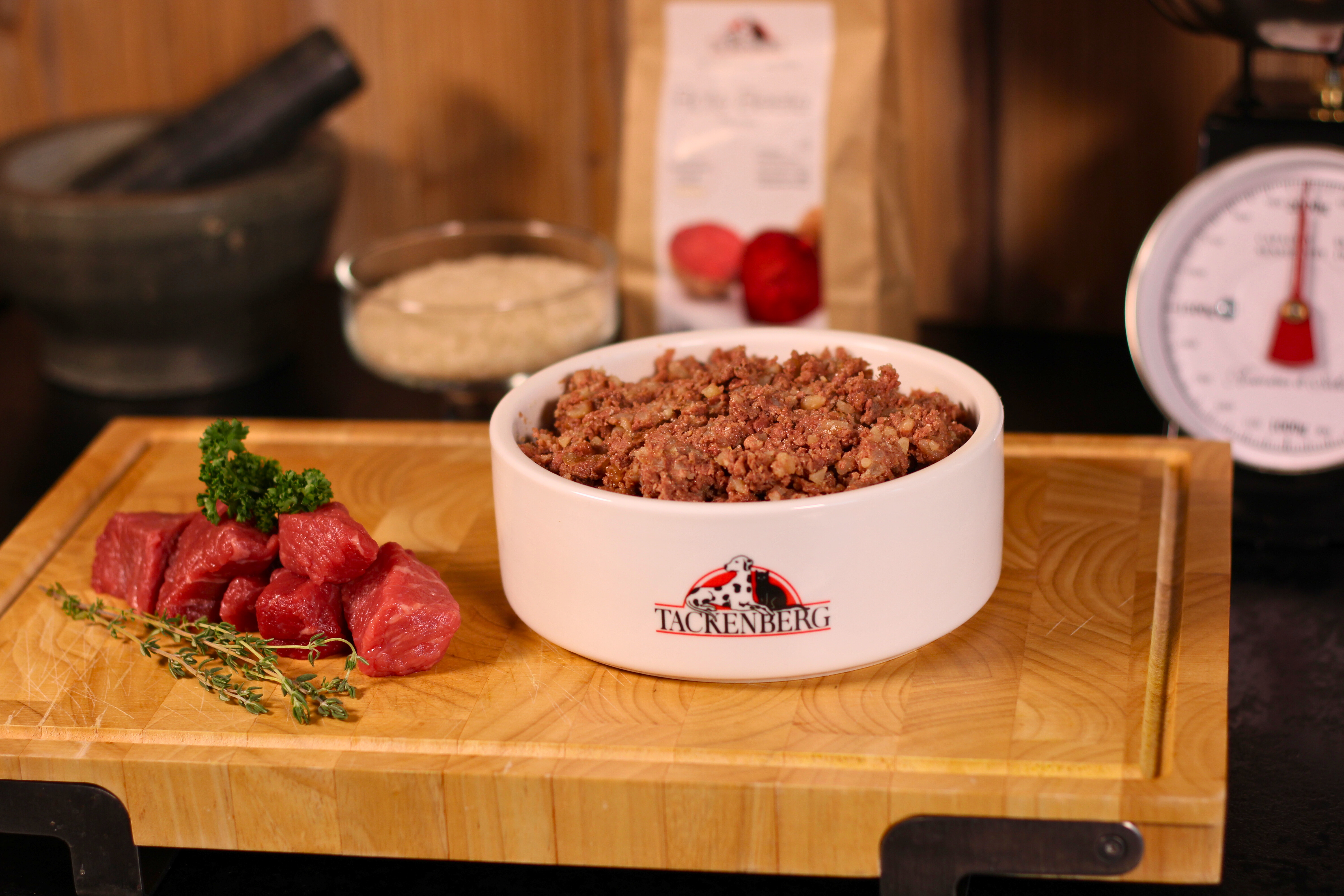Dieses praktische Nassfutter-Menü vom klassischen Rind mit kernigem Wildreis und feldfrischer Rote Beete ist der ideale Begleiter unterwegs oder auch Zuhause. Verfeinert mit aromatischen Kräutern versorgt dieses vollwertige Menü deinen vierbeinigen Gefährten mit allen Nährstoffen, die er für ein glückliches und aktives Hundeleben braucht. Die ausgewählten Zutaten werden in unserer Futtermanufaktur nach einem durchdachten Rezept schonend und sorgfältig zubereitet. So bleiben möglichst viele Vitamine erhalten. Dabei verzichten wir komplett auf künstliche Zusatzstoffe, wie beispielsweise Farb-. Lock- oder Aromastoffe.