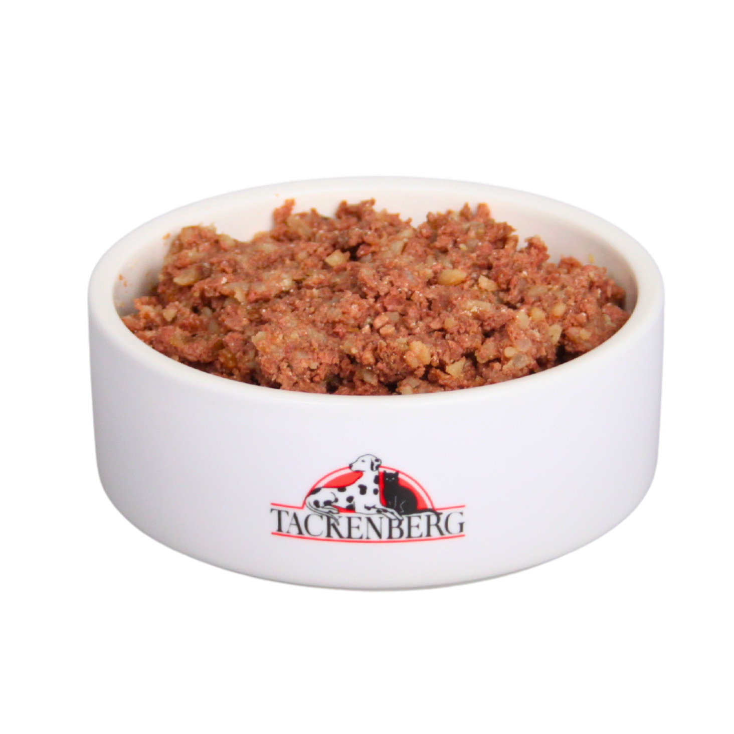 Um eine ausgewogene Mahlzeit zu gewährleisten, empfehlen wir bei Hunden ein Verhältnis von ca. 80 % Fleisch und Innereien & 20 % pflanzlicher Komponente.