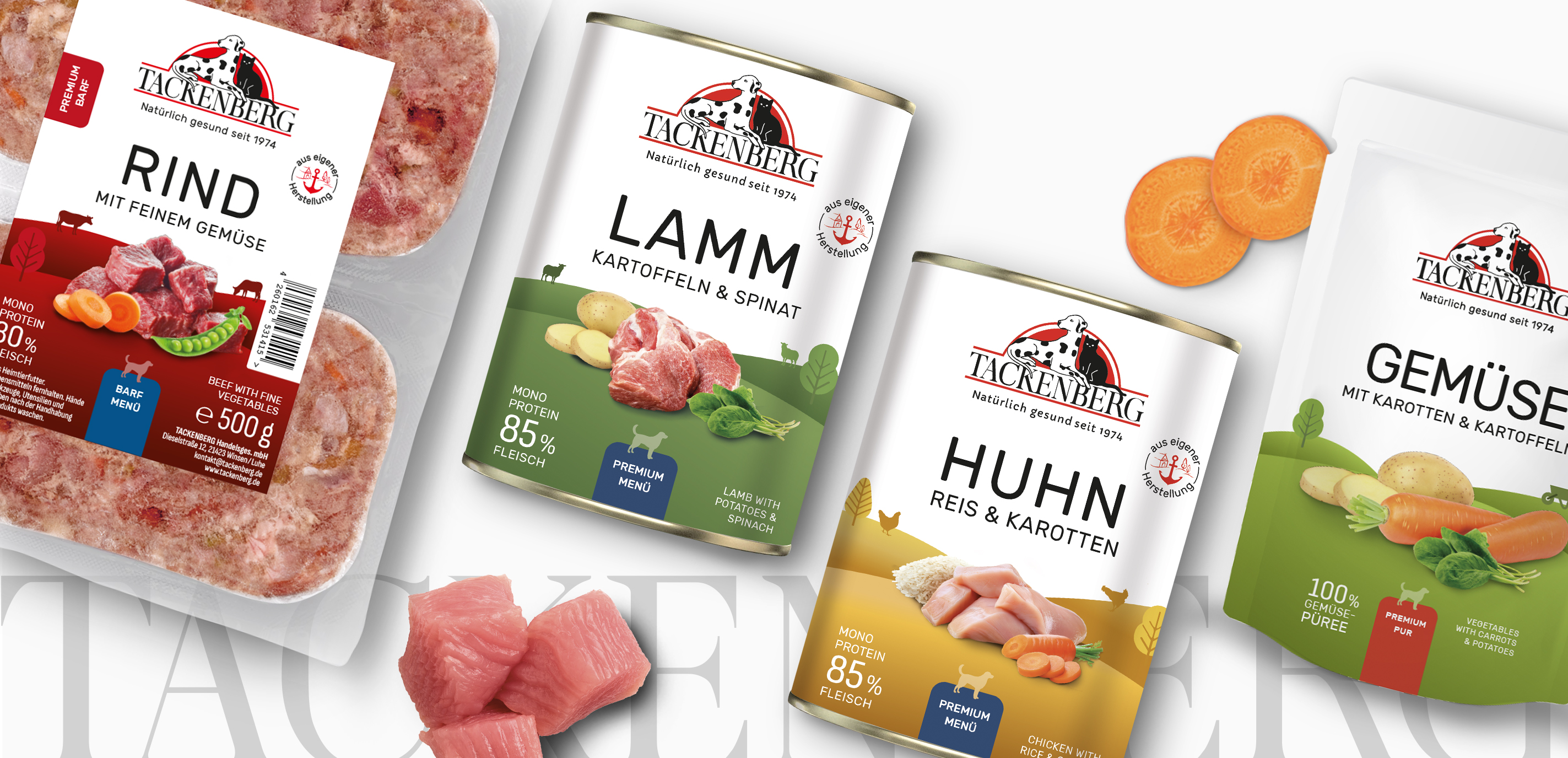 TACKENBERG steht seit 1974 für naturgesunde Ernährung für Hunde und Katzen. Was damals als Pionierarbeit begann, ist heute ein modernes, leistungsstarkes Unternehmen mit eigener Produktion, tiefem Know-how und einer klaren Mission: Tiernahrung auf einem Niveau zu schaffen, welche Hunde und Katzen nährstoffreich und gesund ernährt.