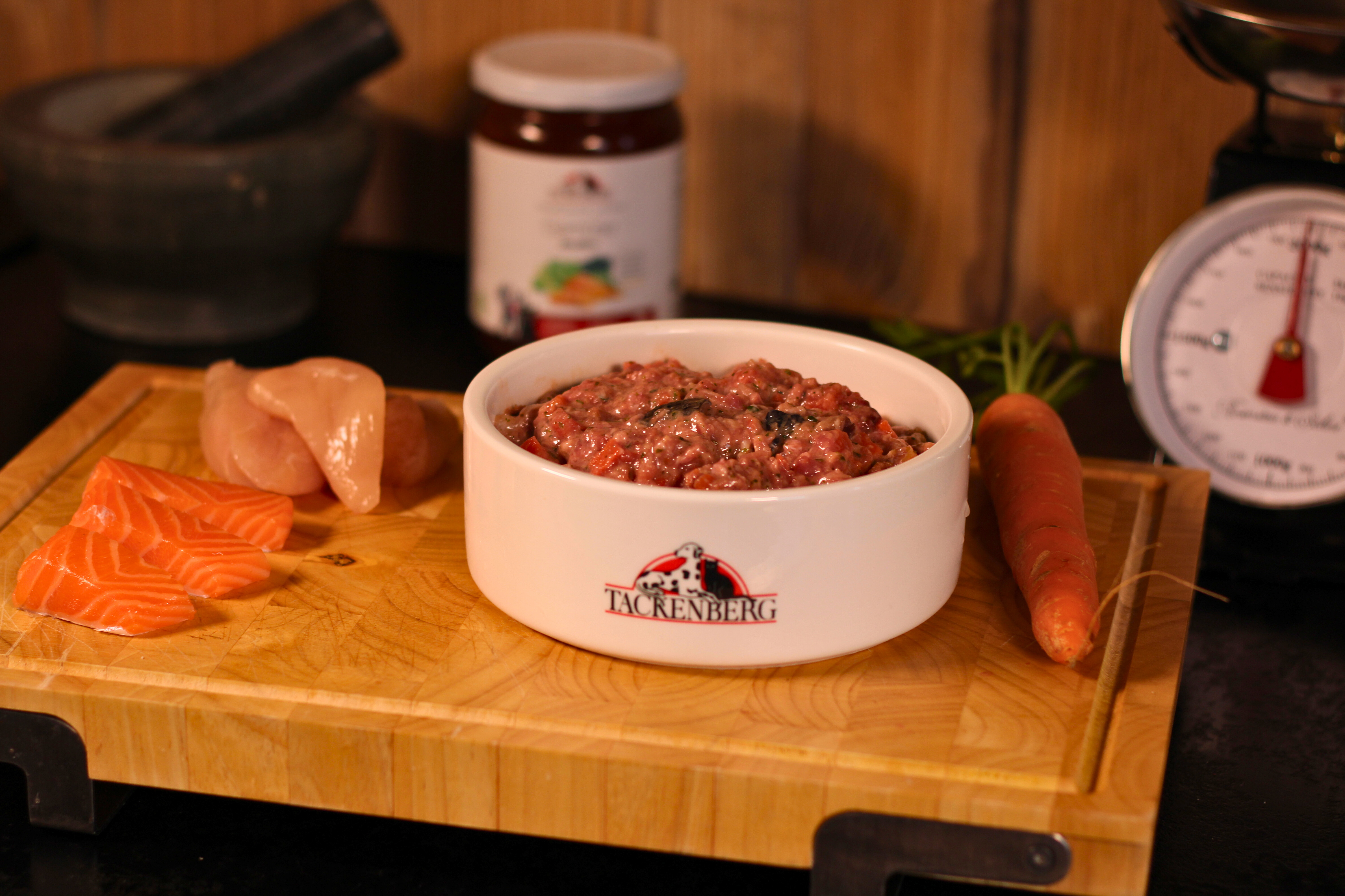 Naturgesundes BARF-Menü vom Huhn mit Lachs